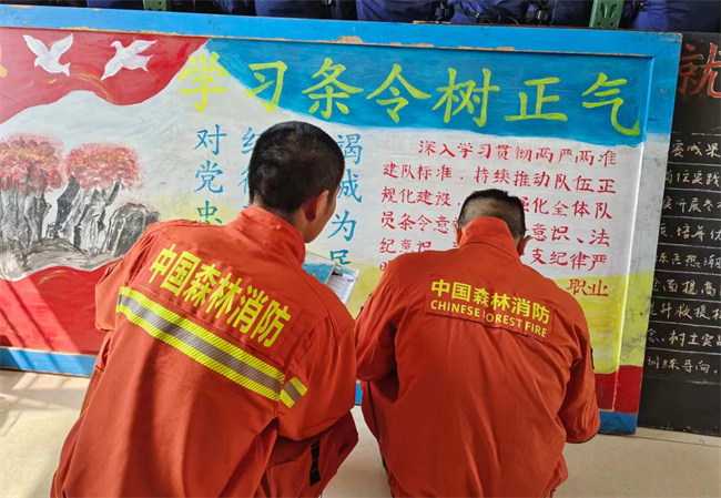 人不以规矩则乱,队不以纲纪则废。大队采取干部骨干带头学、原原本本深入学、专题授课重点学、结合本职对照学的方式,深化对条令的学习理解和消化,从小细节、小环节入手,全员参与、一人不落,切实把内容理解透、把规定掌握准、把标准把握好,引导消防救援人员进一步理解和掌握条令条例的精神实质,牢固树立自觉遵守、时刻执行条令条例等规章制度的意识,达到真学、真懂、真用的目的。