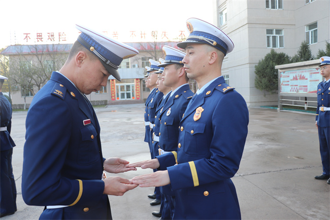 检查前,干部骨干以身作则,率先垂范,受检人员态度端正,精神饱满,队容严整,认真接受检查。在队容风纪检查中,大家都能积极参与,认真配合,检查人员严格按照《内务条令》,对个别人员着装不规范、未着制式袜子、未扎制式内腰带等问题现场进行登记,并责令立即整改,确保全体人员做到着装简洁统一,队容规范严整。整个过程,全体参训人员态度端正、认真训练,能够按照要求认真完成好每一个动作,体现出基层队伍良好素质和精神面貌,真正达到了“队列整齐,令行禁止”的训练要求。检查结束后,值班员根据检查结果组织讲评并提出三点要求:一是按规定配套穿着,不得将不同季节、不同种类的服装混穿;二是严格佩戴标志,做到配套齐全、符合要求;三是按规定做到衣着整洁,不得披衣、敞怀、挽袖和卷裤腿,班长要率先垂范,以良好的姿态做出表率,确保队员队容严整。