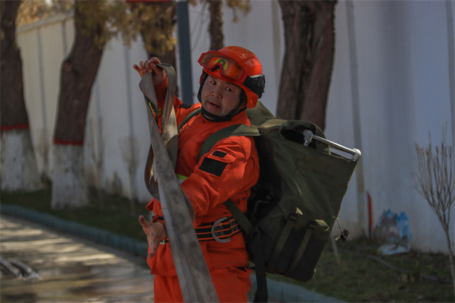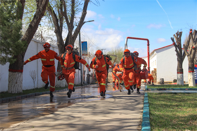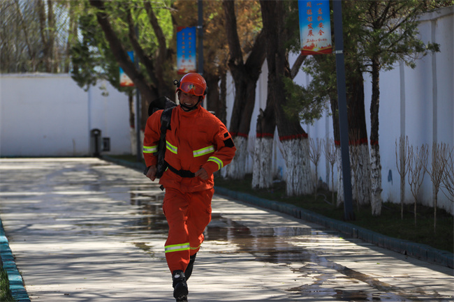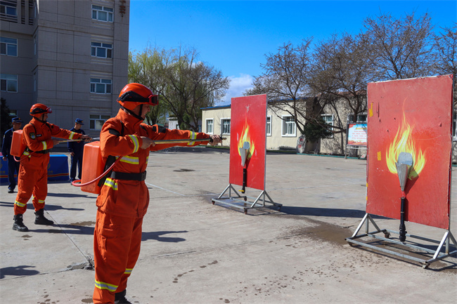 “预备……开始!”水泵架设考核现场随着评判员一声令下,数名半专业扑火队员背起25斤重的水带框冲向目标区域。“1号水泵已出水、2号水泵已出水、……撤收!”半专业扑火队员按照各自的分工有条不紊地展开行动,架设水泵,铺设管带,动作娴熟,连接紧凑。