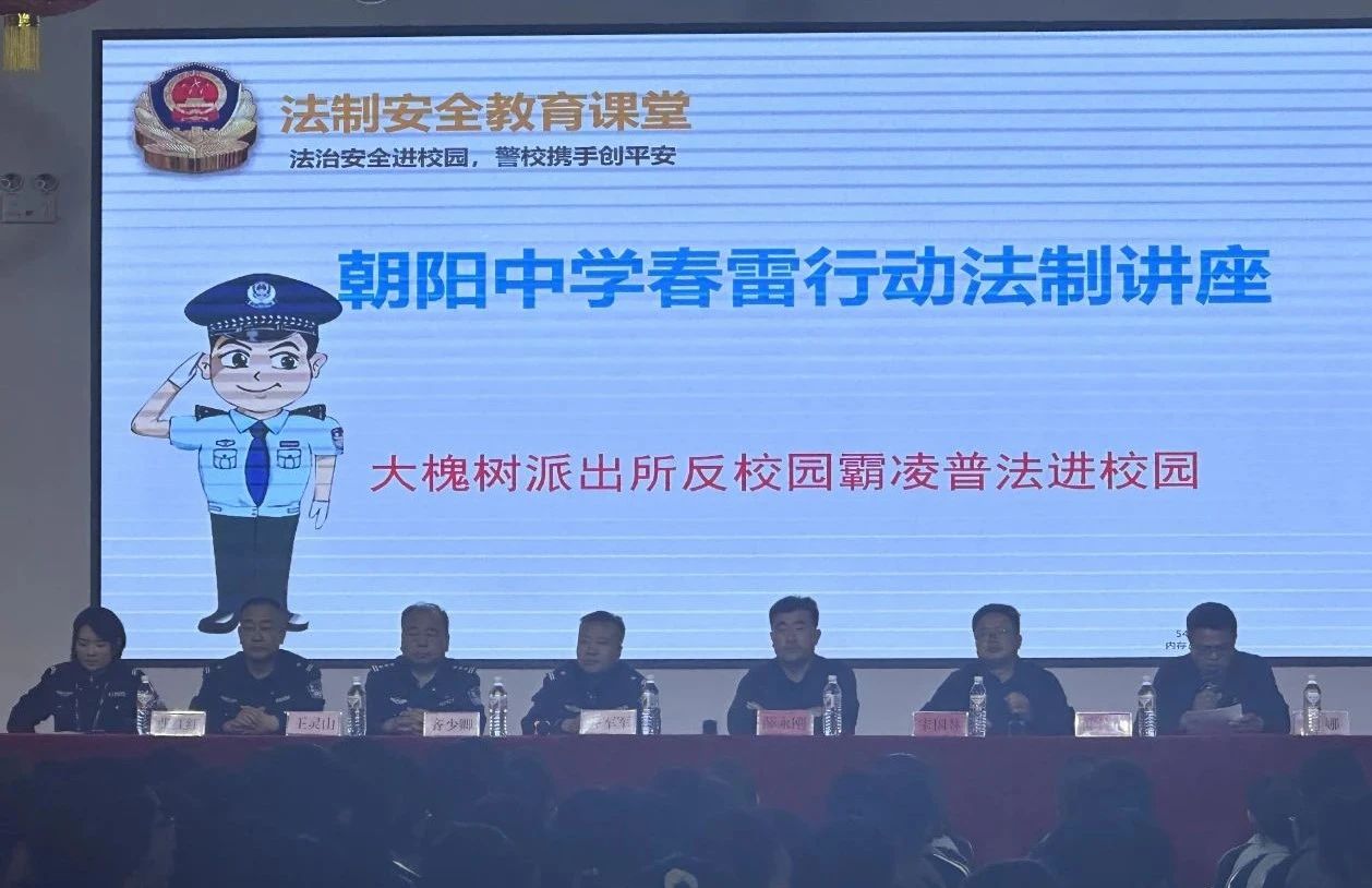 本网讯:(薛苏俊)为进一步加强校园安全建设,提高校园师生法治意识,增强纪律意识和良好的行为规范养成,预防校园暴力的发生,4月16日,洪洞县公安局大槐树派出所民辅警到朝阳中学开展“法治安全进校园  警校携手创平安”主题宣传活动,为莘莘学子撑起反校园霸凌的“平安伞”。