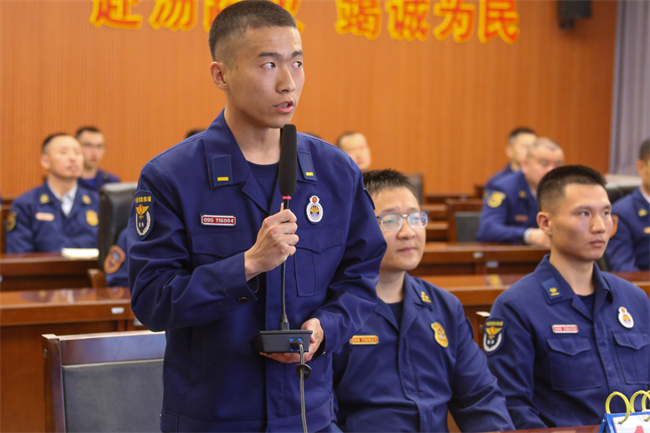 “观众答题”环节,由支队首长利用小飞侠从各单位到场人员中随机抽取3人答题,答题时间30秒,答对,代表队加20分,答错或答题不完整,代表队不加分,各单位抽取人员从容应对,全面体现了“条令学习月”活动开展以来各单位扎实开展的教育成果。