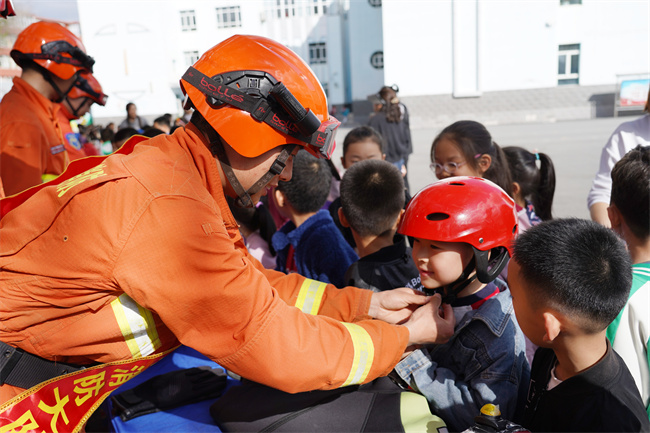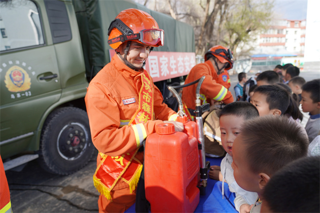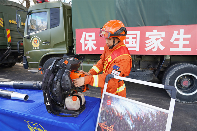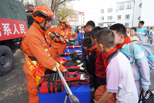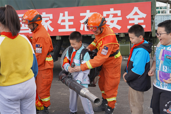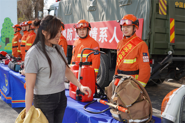 “现在大家所看到的是我们在扑打森林火灾时所使用的风力灭火机。”活动现场,森林消防员将风力灭火机、水枪、水泵等森林灭火主战装备向师生们一一介绍,详细讲解操作规程和注意事项,并邀请师生“零距离”感受森林灭火主战装备,通过面对面讲解、点对点答疑、手把手教学,在示范互动中拉近了和师生的距离,充分调动现场氛围,让全体师生真正学到知识、获得本领、掌握技能,取得了良好的宣传效果。