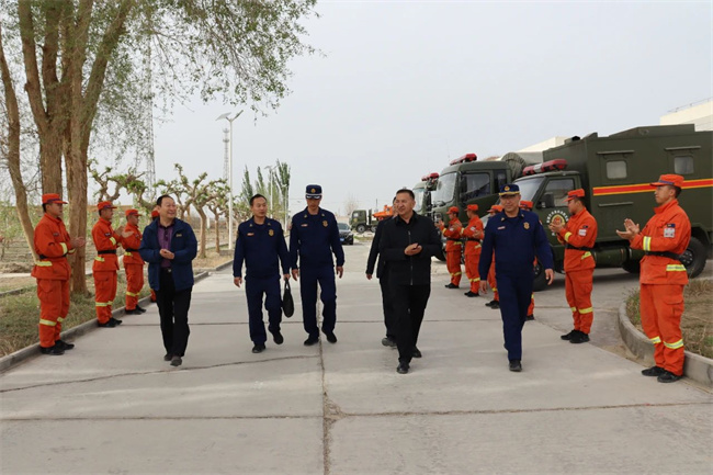 库尔勒大队教导员达布希拉图代表大队党委及全体指战员对巴州应急管理局委员刘春耀一行到队看望慰问驻防指战员表示热烈欢迎和衷心感谢。并表示在今后的工作中,将认真学习、研究和贯彻上级有关防火灭火指示精神,密切协同驻地森林草原防火部门,开展联勤联演,加强练兵备战、坚决打赢防灭火攻坚战,全力保护好森林资源和人民群众生命财产安全,为守护好国家生态资源做出积极贡献。