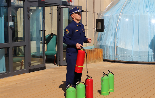 “拔掉保险销,左手握住喷管,右手提着压把,站在火的上风或侧上风方向,对准火焰根部,进行摇摆喷射……”演示现场,宣传员现场讲解演示了灭火器、灭火毯、灭火栓以及微型消防站等设施器材的正确使用及维护保养方法,同时,为了确保酒店员工人人会操作、个个会应急,宣传员组织员工亲自体验灭火器材怎么使用,现场指导整改错误使用方法,确保员工能够正确使用各类灭火器材。期间,酒店员工积极参与,达到了预期效果。