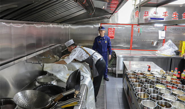 “如果厨房突发火情,大家应该怎么办?关于厨房灭火,大家能想到哪些方法呢……”宣传员结合该饭店实际情况,全面系统地向员工讲解了初期火灾扑救、员工消防安全职责、日常防火巡查检查要点、火场逃生技巧等消防安全常识,并普及了相关法律法规,要求该单位从严落实消防安全主体责任、加强消防安全管理以及消防安全教育培训,定期组织员工开展消防安全警示教育和灭火疏散演练,不断提高员工的预防和自救的能力。
