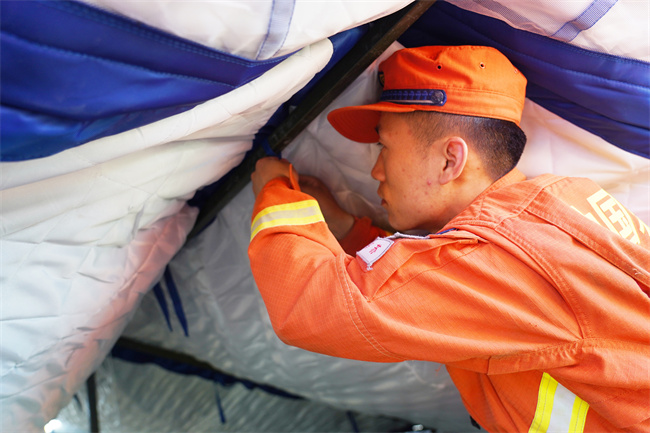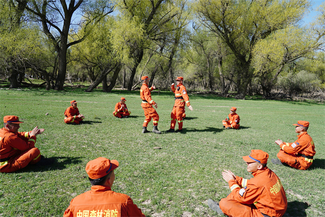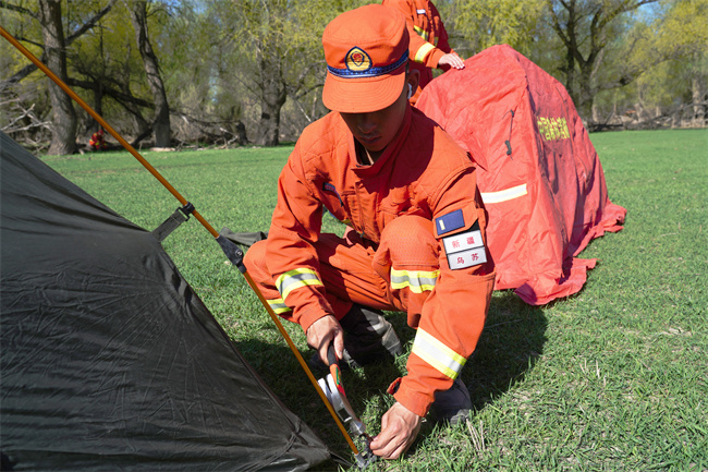 到达预定地点后,值班员迅速组织全体队员搭建帐篷并对识图用图、野外生存、灭火装备操作与使用、班(组)灭火战斗等实战化科目进行训练,着力提高队伍打赢能力,培塑指战员敢打必胜、勇于吃苦、坚韧不拔的战斗作风。