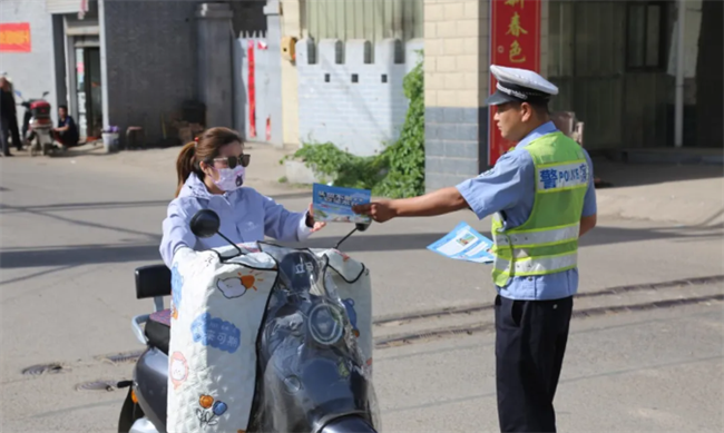 活动中,民警结合春季农村群众出行特点及当前农村道路交通安全形势,通过拉家常、发放宣传资料、以典型事故案例以案释法的方式,面对面向村民宣传 “一盔一带”“一老一小”“拒绝酒驾”等相关安全防范知识,以及普及无证驾驶、酒后驾驶、客货混载、农用车违法载人、骑乘摩托车及电动车不佩戴安全头盔、驾乘汽车不系安全带可能带来的危害和后果,叮嘱村民出行是一定要遵守交通法规,注意行车安全,时刻把安全放在首位,不能贪图一时一刻的便捷给他人或家人带来无法挽回的痛苦,要做到文明、安全出行。