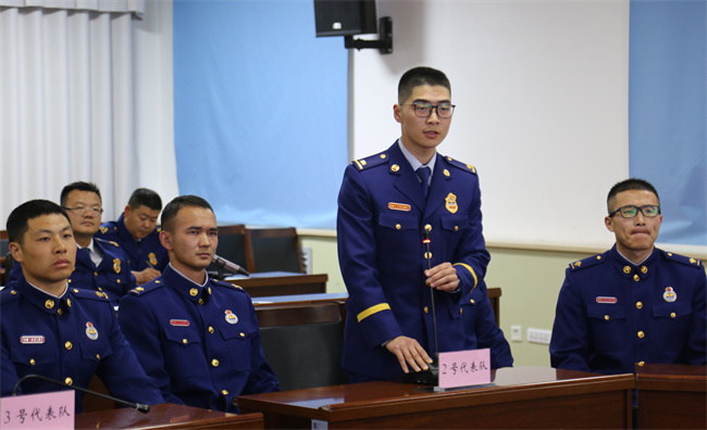 本网讯:(崔守龙)近日,阿勒泰地区森林消防支队会议室内掌声雷动、群情激昂,一场以“学条令、严作风、正秩序、保安全”为主题的条令知识竞赛在这里召开,来自各个单位的5支参赛代表队同台竞技、一展风采。此次竞赛旨在检验支队各级“条令纲要学习月”活动成果,形成以赛促学,以学促行的学习氛围,进一步提升指战员条令意识和纪律观念。