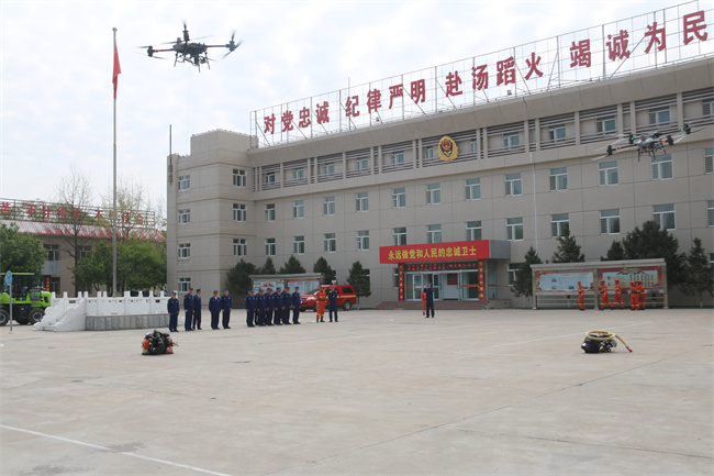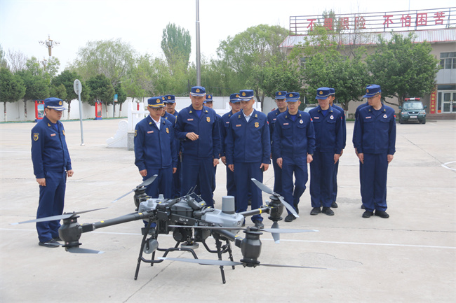 期间,大队无人机操作手现场演示了两架大疆FlyCart30中型运载无人机运载灭火装备科目。同时,县消防救援大队指战员向大家详细介绍了抢险救援车的车型特点,作业功能和各类车辆配套的抢险救援工具。
