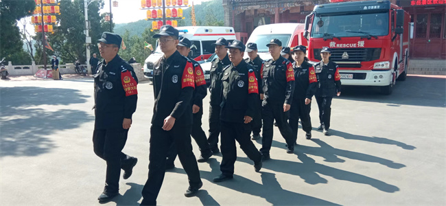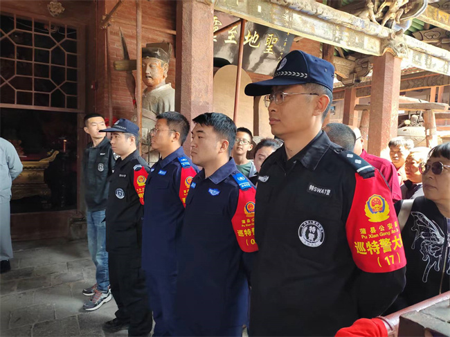 安保执勤期间,执勤民警在庙会现场及周边不间断开展巡逻防范,全面落实各项工作措施,引导群众进一步提高自身防范意识和抵御风险能力。执勤交警们全天候在庙会周围的各个重点路口执勤,加强道路交通疏导力度,加强对现场人员、车辆的指挥疏导工作,及时清理乱停车辆,指挥疏导车辆绕行,确保周边交通秩序畅通。