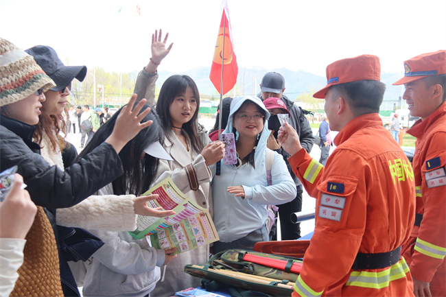 大队结合春防工作任务实际,以“五一”防火专项行动为契机,科学统筹,严密组织开展防火宣传。大队采取“线上+线下”的方式,利用网络平台直播,通过在景区人员密集、客流量较多的区域摆放展板,发放宣传手册、宣传单、防火纪念品等方式,向来往群众宣传森林防火相关知识,邀请群众现场体验各类灭火设备的正确使用方法,让群众更加贴切感受、支持参与森林防火工作。