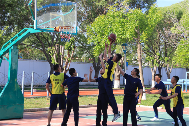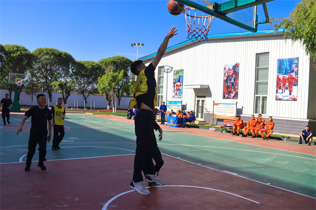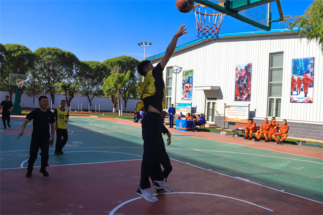 迎“篮”而上。随着一声哨响,篮球比赛震撼打响,回防、传球、突破、上篮……场上参赛队员你争我抢、你攻我守,展开一轮轮抢球、断球、投球比拼,尽情地展示自己的篮球水平,随着比分交替上升,场下观赛人员的助威声、呐喊声一浪高过一浪,精彩激烈的角逐将比赛推向一个又一个高潮。