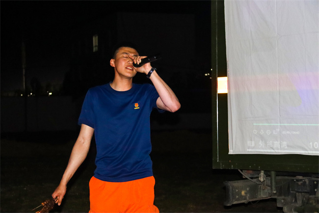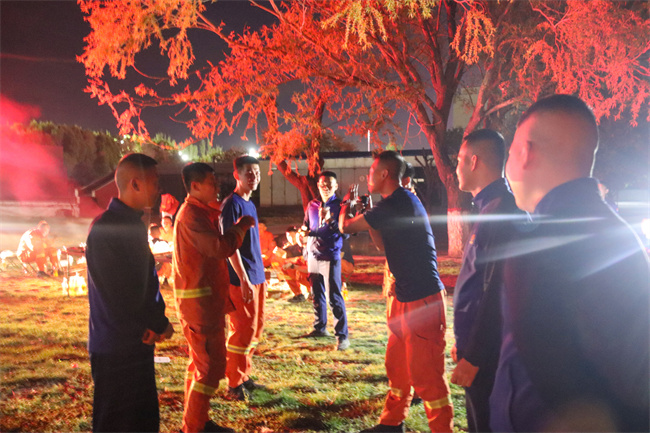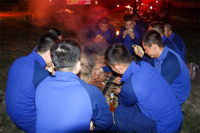 篝火晚会。燃起的炭火、喷香的烧烤,高涨的热情,篝火晚会上,队员们个个都是顶尖的烧烤高手。香肠、牛肉、羊肉......孜然、辣椒、胡椒......虽是很常见的烧烤配菜,但在他们的心灵手巧下,淋上秘制酱料,孜然和羊肉交汇碰撞出别样的香味,丰盛的食材在他们的手下变得色香味俱全,晚会现场在一片欢声笑语显得热闹非凡。