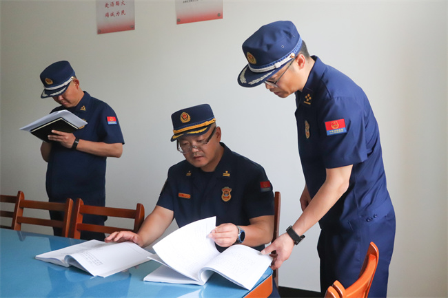 检查期间,工作组进行条令法规常识测试,现场观摩大队队容风纪检查及队列会操组织程序实施,并对照《正规化管理规范》及图册,对内务设置、库室场地建设进行达标验收。每到一处,张晨主任都会认真了解当前大队正规化建设方向,指出存在的问题和薄弱环节,并结合大队建设实际情况,对如何确保正规化建设工作出亮点、见实效等方面提出了科学可行的建议。