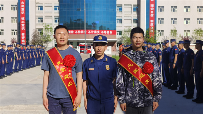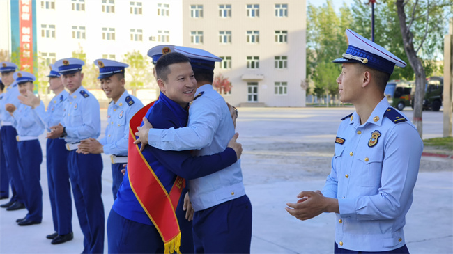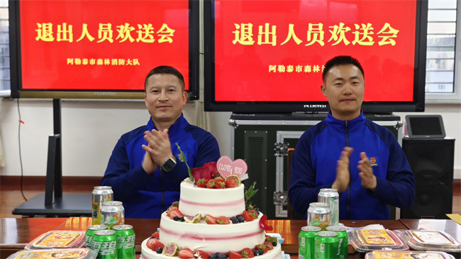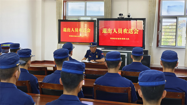 大队组织召开欢送会,会上,干部为退出消防员卸下标志服饰,并为他们送上美好的祝愿。全体指战员一同重温入队誓词,再次感受作为一名消防员的光荣与初心,大家热烈拥抱,互诉兄弟情义,共话美好前程。退出消防员努尔波勒表示:离开森林消防队伍之后一定会继续以一名消防员的标准严格要求自己,无论走到哪里都会永葆本色,把队伍的优良作风带回去,在新的岗位上创造更大辉煌。