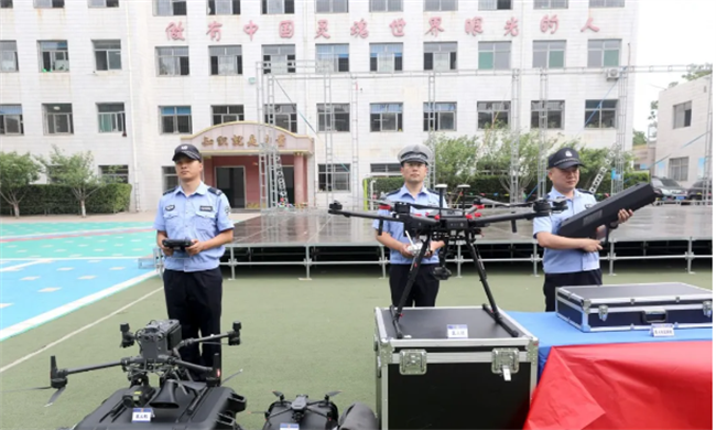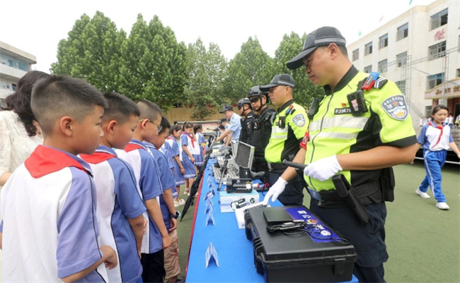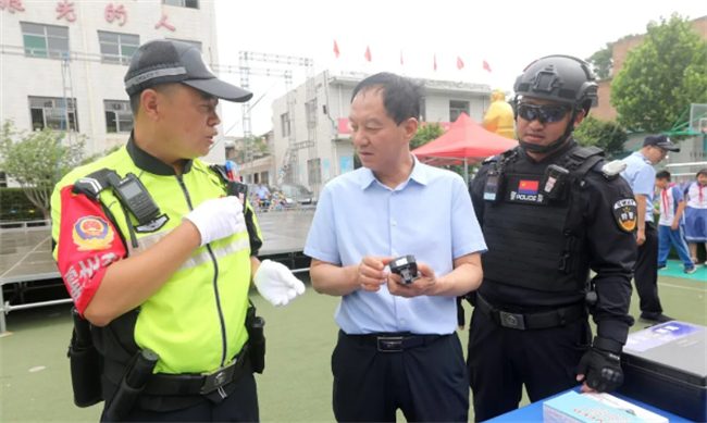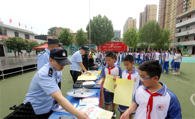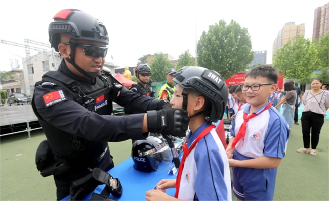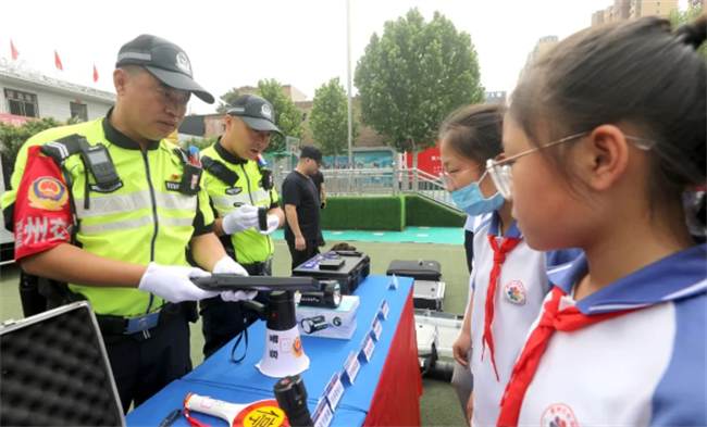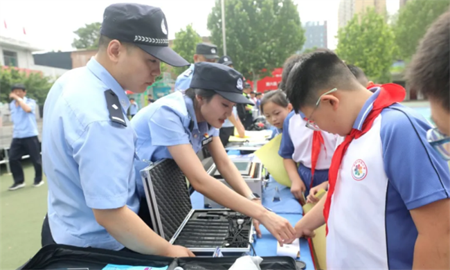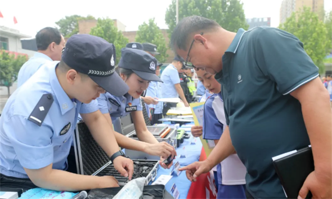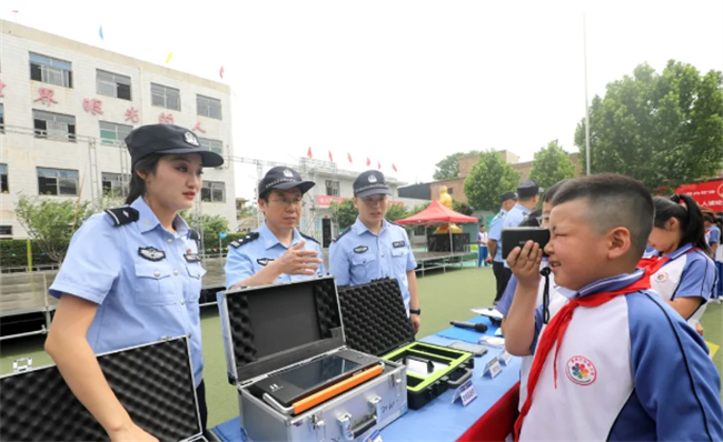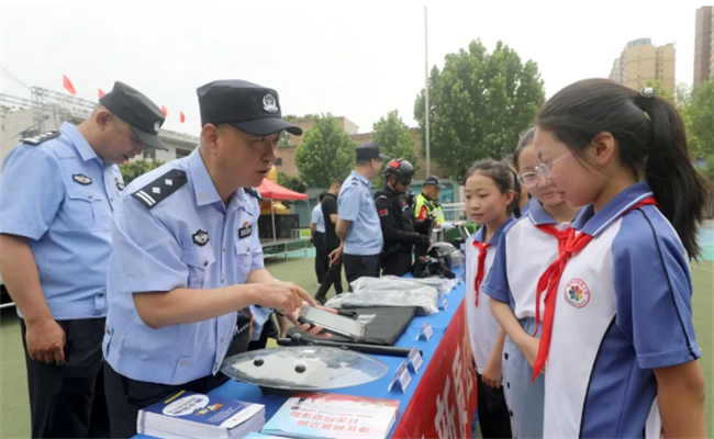 活动中,民警通过设立展台、发放宣传资料、组织参观公安科技设备等形式,多方位、多角度地展示了公安科技应用的成果。为了使同学们“零距离”接触,体验公安科技装备,感受当代先进公安科技的魅力,在互动环节,民警积极邀请师生亲身体验警用无人机、反制枪、微光夜视仪、数字对讲机、信息釆集仪、执法记录仪、对讲机等公安科技设备,整个过程,师生们热情高涨,积极提问,现场互动交流气氛浓厚。同时,民警还向广大师生发放110报警、应急避难、预防溺水、防火防盗防抢劫、反电信诈骗等内容的宣传资料,倡导安全、文明、科学的生活方式,营造和谐安全的创新文化氛围。