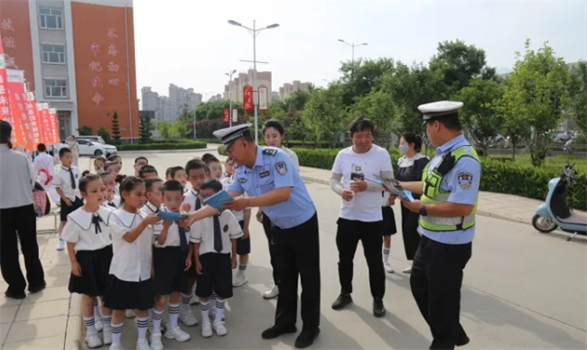 活动中,民警根据学生年龄特征和校园周边道路交通环境,通过交通安全知识讲解、交通安全游戏互动、问答互动等形式,寓教于乐讲解“遵守交通信号灯、安全过马路”等交通安全知识,带领同学们认识交通标志、标牌、交通警察指挥手势,掌握交通安全知识。同时,向参加活动的家长发放交通安全宣传资料,并结合身边发生的典型交通事故案例,详细向学生们及家长讲解一盔一带、农用车违法载人及拒绝乘坐超员车等交通违法行为的严重危害性,教育家长驾乘汽车全程全员系好安全带,骑乘摩托车、电动自行车戴好安全头盔,摒弃各类交通陋习,文明参与交通。