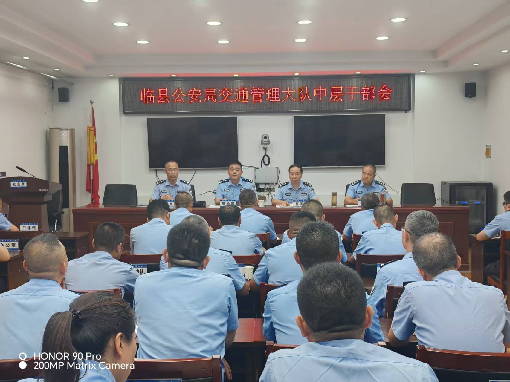 会上,郭泽鹏结合前期调研情况,深入剖析了交管大队在队伍建设、事故预防、执法规范等领域存在的问题,明确提出要迅速扭转交通安全工作被动局面,并围绕当前交管重点工作作出部署:一是要提高思想认识,周密组织部署。深刻认识抗战胜利80周年纪念活动等重大活动安保维稳工作的重要性,严格对标上级部署要求,确保安保工作万无一失。二是要启动公安交警安全检查站,执行一级警务模式,强化对“两客一危一货”车辆的安全检查。三是要聚焦辖区管控重点,全面复盘今年以来事故多发及重大事故暴露的工作短板,梳理问题清单,靶向整改,及时排除安全隐患、化解风险。四是要加强秩序管控,在重点路段加密巡逻频次、加大管控力度,将警力向路面倾斜,严查各类交通违法行为。五是要做实应急管理,密切关注天气变化、自然灾害等影响交通安全的因素,提前做好应急准备。六是要强化学生交通安全管理,针对安保期间恰逢学校开学季的实际,主动联动教育部门排查校园周边隐患,从严管控校车、学生乘车及家长接送车辆,严防中小学生交通事故。七是要狠抓队伍建设管理,坚决落实中央八项规定精神及公安部“六项规定”,规范值班备勤与应急值守,坚持严格规范文明执法,杜绝因执法问题引发舆论风险,同时做好自身安全防护。八是要切实提高重视程度,压实履职责任,确保各项工作措施落地,全力保障全县道路交通安全畅通。