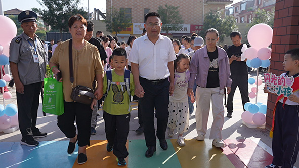盐湖区第十实验学校以“朝阳拂风车,童梦赴新途”为主题,迎接775名一年级新生。校门口,五彩气球花柱与创意打卡区相映成趣,老师和学长们用拥抱与笑容迎接新生,家长们陪着孩子拍照留念,定格入学瞬间。
