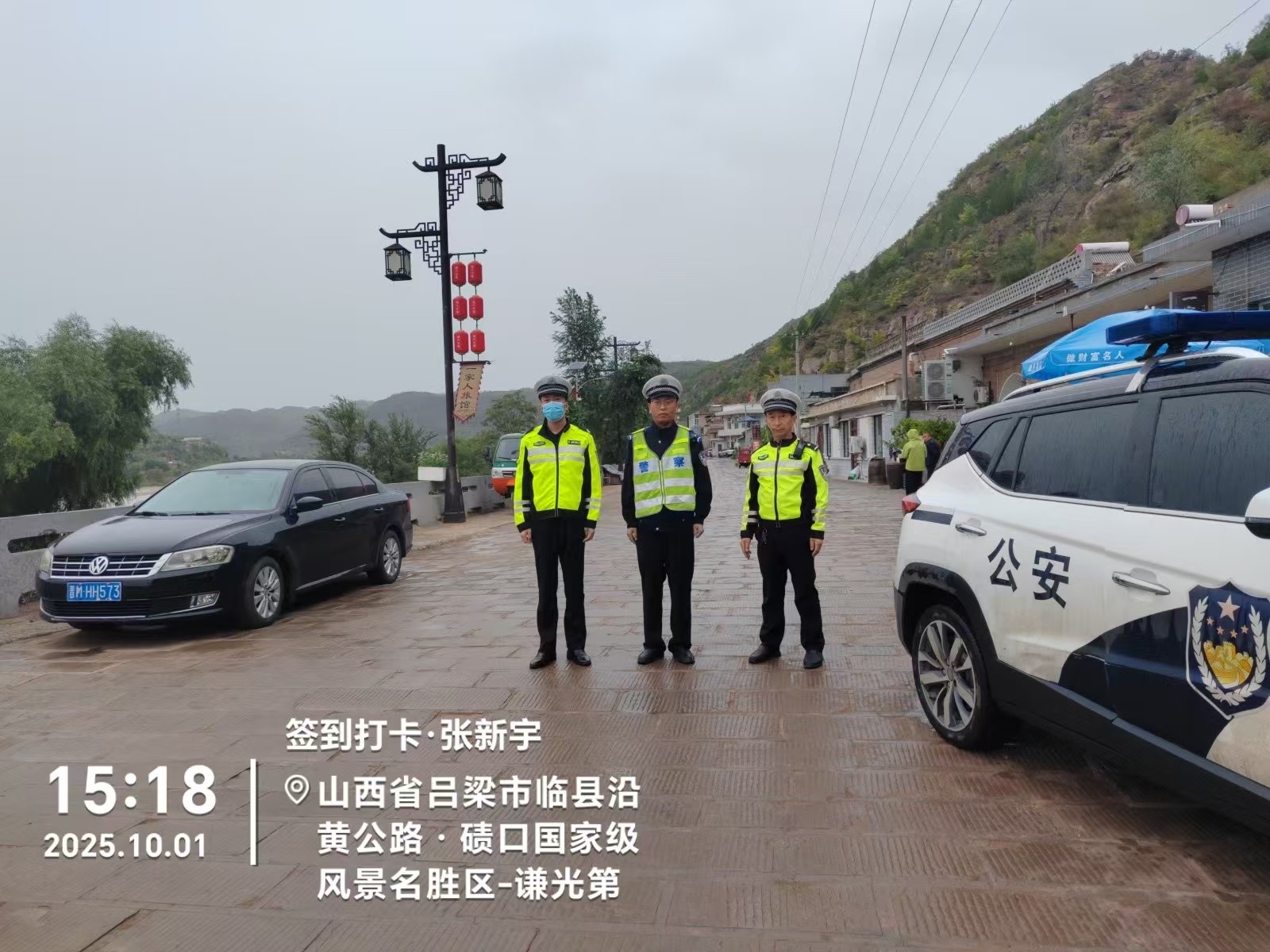 国庆假期第一天,碛口景区人流如织,临县公安局交通管理大队全力以赴保证畅通,科学安排部暑警力,采取外紧内松原则,在碛口大桥、麒麟桥南北、碛口停车场、碛口碑楼、麒麟山庄等重要路口易堵点部署警力,分流车流、人流,并在碛口景区周边道路安排警力巡逻,查处交通违法,严防堵塞,下午,虽然下起了中雨,但执勤民警始终坚守岗位,保障了碛口景区道路交通安全。