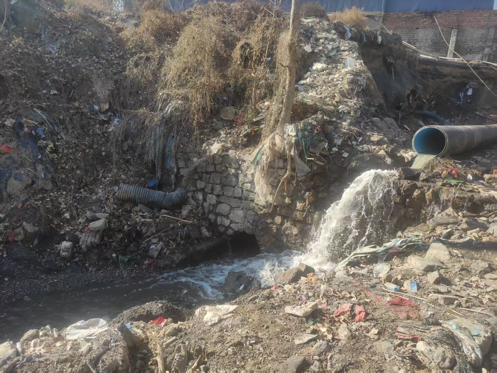 2025年11月25日.网友拍摄的图片显示:尧都区汾河办事处新西村附件企业(新源华康公司跟新西洗煤厂)两家公司向厂外沟渠排放污水。此两家企业排污口流出浑浊性污水,散发出刺鼻的恶臭,这些污水最终流入洪北沟进而汇入汾河。