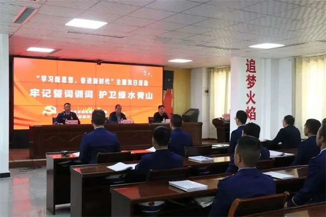 大队积极借助驻地丰富的红色资源优势,把阿克苏地区文博馆、林基路烈士纪念馆、柯柯牙绿化工程纪念馆等作为主题教育见学基地,全力打造“家门口的红色学堂”,让看得见、摸得着的“历史痕迹”融入指战员生活,在砥砺初心的同时探究忠诚密码。同时,大队有效利用“沉浸式”“体验式”的红色教育虚拟平台,建设大队党史主题文化长廊,让指战员从中共一大到二十大、从南湖红船到巍巍巨轮的“红色之旅”中,感悟初心使命、强化忠诚担当。