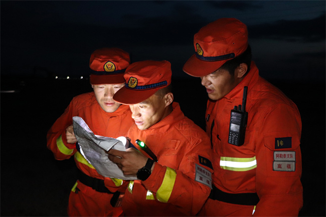 夜幕降临,队员们训练的脚步却没有停歇。“同志们,今晚训练的科目是夜间按图行进……”随着中队长刁伟一声令下,没有片刻驻足,队员们在山林间展开一场冒险之旅。“夜间按图行进最重要就是人在路上走,图在心中移。关键是现地对照要做好,避免‘失之毫厘、差之千里’。”班长李少杰说道。想在短时间内对站立点、目标点进行标会,并准确的规划出行进路线,对队员们来说是一个不小的考验,队员们在山林间飞奔不止,每到一处目标点,都会对现场展开地毯式搜索。手电筒闪烁的灯光在漆黑的夜晚格外醒目,从远处看去,仿佛天上的繁星跌落进了树林里。