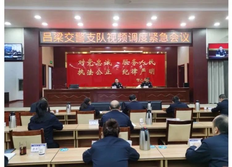 2023年11月19日,吕梁市公安局交警支队召开视频调度紧急会议。会议传达学习了省委、市委安全生产暨安全隐患排查整治工作会议精神,对近期重点工作进行了安排部署。市公安局党委委员、副局长、交警支队支队长刘亚楼同志主持会议并作了重要强调,支队机关党委副书记任建国,支队各科室所队、中心负责人在支队主会场参会,会议通过视频会议系统召开,各县市公安局交警大队设分会场。