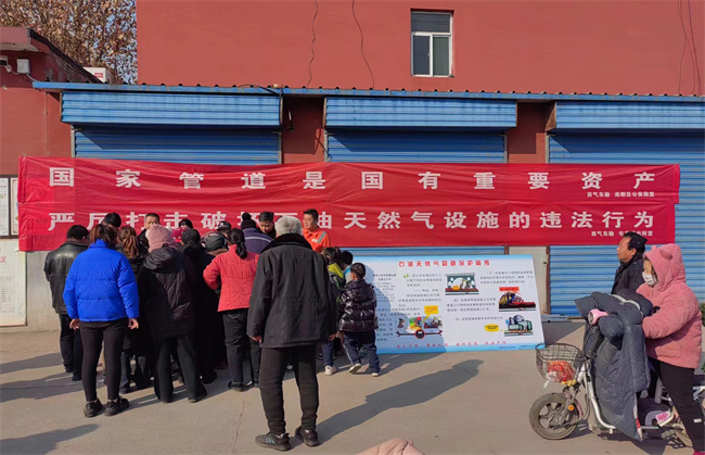 本网讯:(田哲斌)1月22日,尧都区公安局治安大队、屯里派出所联合西气东输临汾分公司在屯里镇沟上村开展“油气”设施安全保护宣传活动。