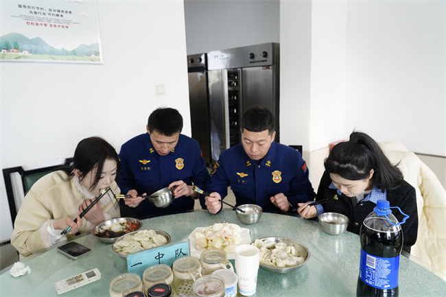 大年三十少不了吃顿饺子,炊事班的同志早早便准备不同口味的馅,等到消防员们来到就开始包饺子,这些平日里在救援一线冲锋陷阵的英雄,分工明确,你擀皮,我包馅,饺子如同新兵报道整齐排列,不一会,一个个新鲜饱满的饺子下锅,翻滚间,承载着他们对新年的美好期许。待饺子出锅,热气腾腾,大家围坐一起,欢声笑语。他们守护着万家灯火,此刻,也在这小小的饺子里,找到了属于自己的那份温暖与慰藉 。