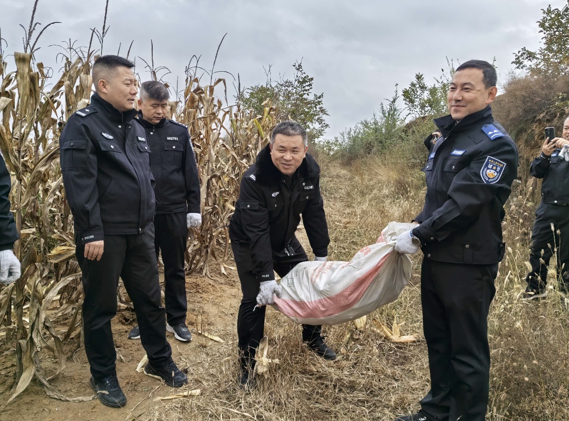 此次活动由大队长张国珍带队,政工股统筹组织,近四年新入党的男同志全员参与,针对村内留守老人、缺劳力家庭的玉米收割难题,组建起“交警助农突击队”。上午九点,队员们统一乘车抵达目的地后,迅速扛起编织袋,走进连片的玉米地。张国珍大队长带头钻进齐腰高的玉米田,动作娴熟地收割玉米;年轻党员主动承担重活,将收割好的玉米穗装进粮袋,肩扛手提运往农户院内,分工明确、配合默契,田间地头随处可见“警察蓝”忙碌的身影 。“家里就我和老伴儿,收玉米犯了大难,多亏交警同志来帮忙!”看着满院晾晒的玉米,刘王沟村留守老人王大爷难掩感激 。