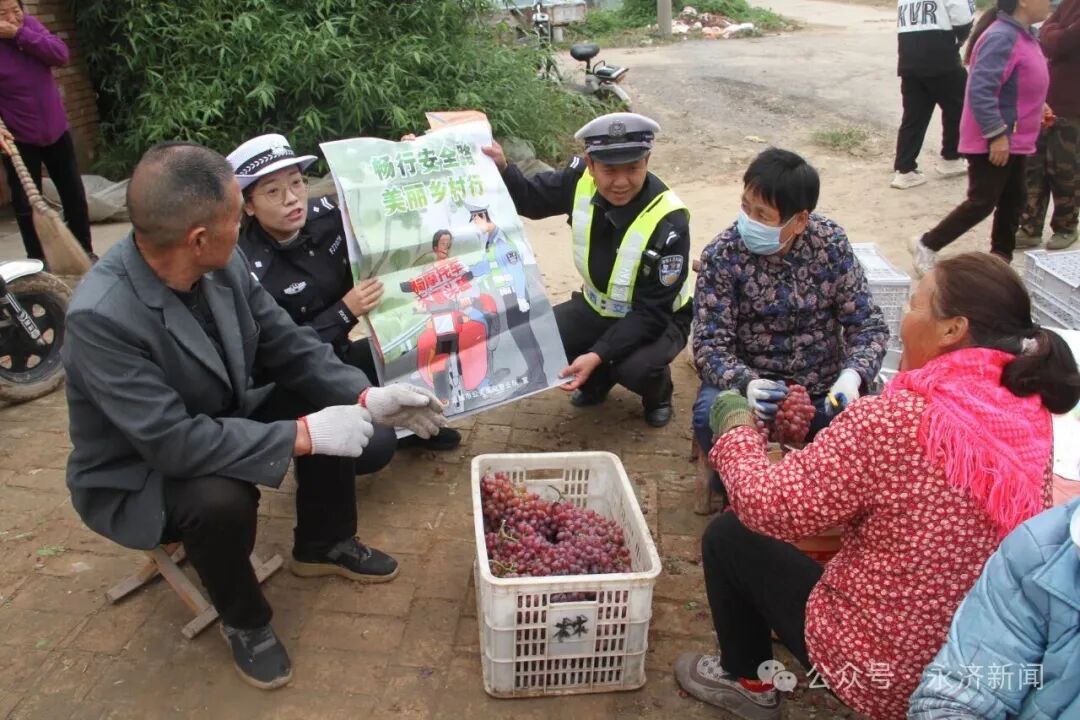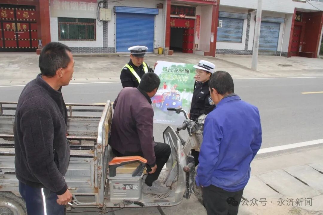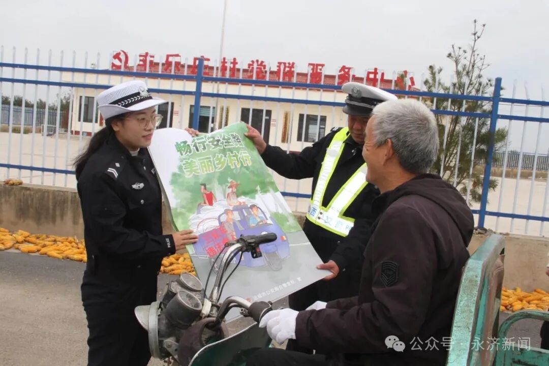 为进一步提升农村地区群众的交通安全意识和文明出行理念,有效预防和减少道路交通事故的发生,10月22日,永济市公安局交管大队组织宣传科、栲栳中队民辅警,深入丰乐庄、新吕、吕庄等村庄,开展了一场以“美丽乡村行、交通安全进万家”为主题的普法宣传教育活动,将交通安全知识精准送达村民家门口。